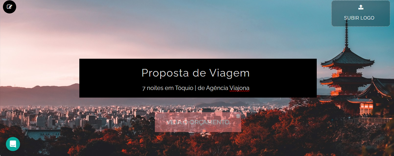Uma das grandes vantagens de uma ferramenta de propostas são as possibilidades de personalização. Dá pra fazer uma capa bem bonita com uma imagem de fundo e adicionar o logo da sua agência, usar as cores da sua marca e criar um visual que deixa tudo muito profissional.